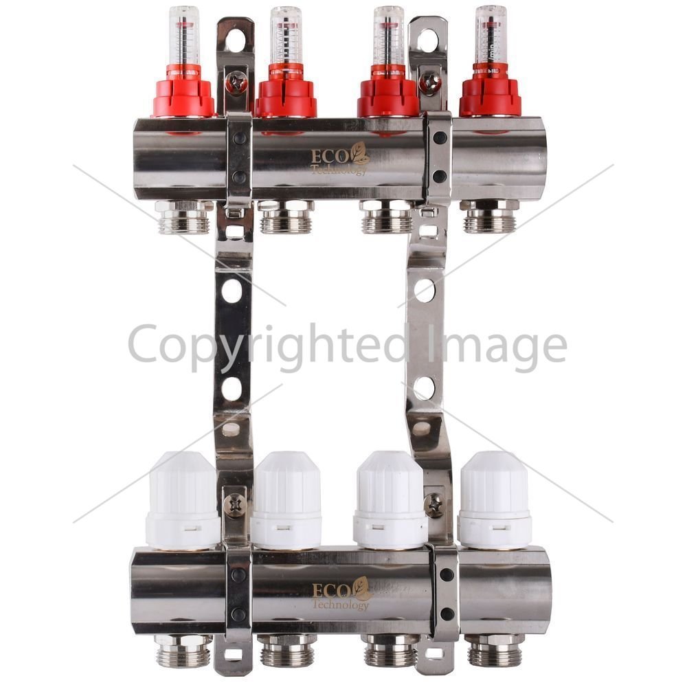 Колектор з витратомірами,регуляторами та кріпленнями 1"х4